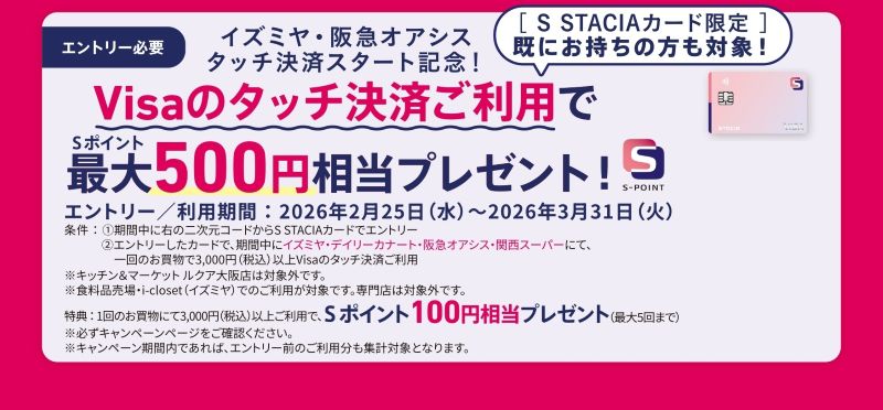 S STACIAカード新規入会&タッチ決済キャンペーン