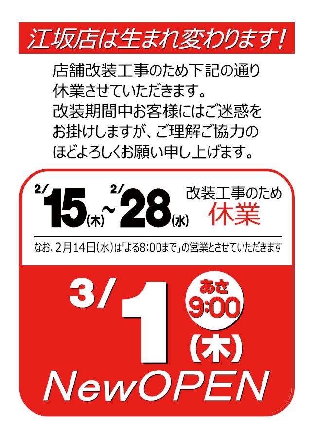 【大阪北部・吹田エリアのお客さまへ】 江坂店改装に伴う休業のお知らせ