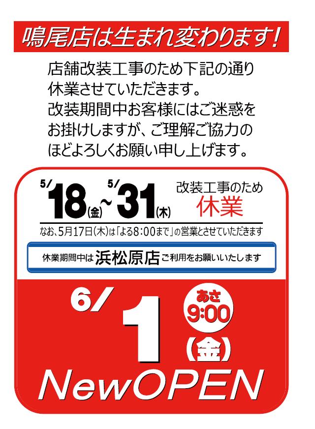 【阪神エリアのお客さまへ】 鳴尾店改装に伴う休業のお知らせ